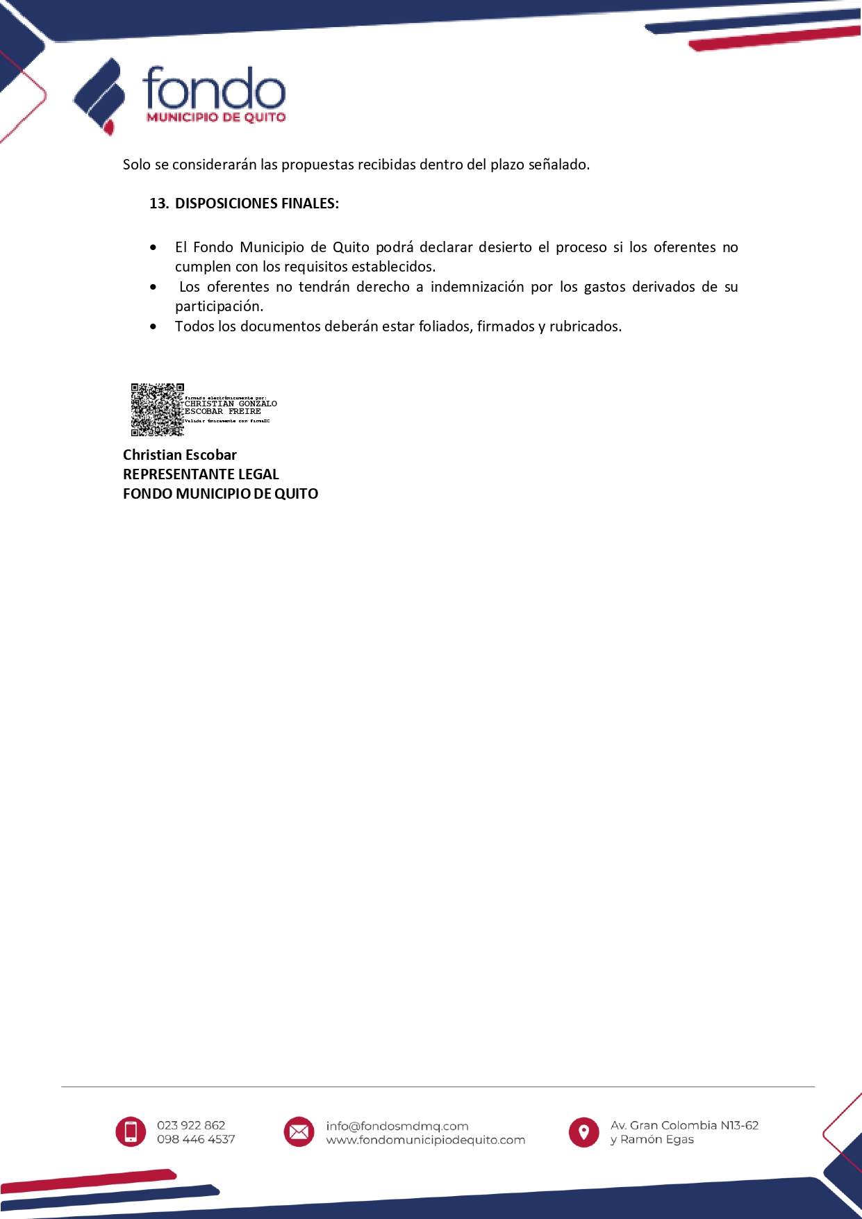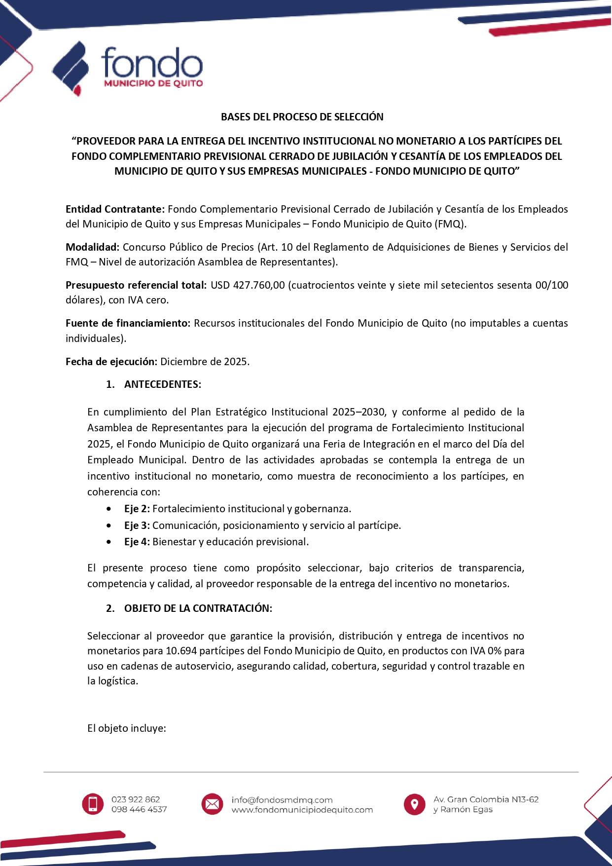 Estos términos y condiciones son obligatorios entre usted (el “Usuario”), incluyendo a usuarios o visitantes de la página web: www.fondomunicipiodequito.com
